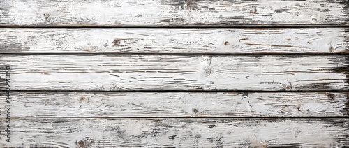 Fototapeta premium From a top view, a wooden plank panel forms the background with a white wood texture