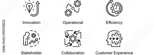 © Eriqjaguar, Obraz premium From Innovation to Customer Experience banner web icon vector illustration of Innovation, Operational, Efficiency, Stakeholder, Collaboration, Customer Experience