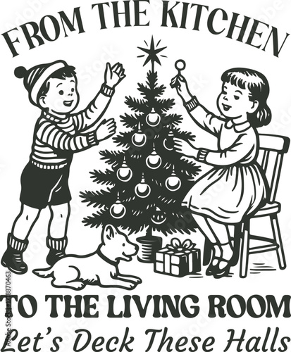 © Shineoxstock, Obraz premium from the kitchen to the living room let's beck these halls - christian christmas holliday t-shirt, funny retro santa typography, christian festival animals quote tshirt