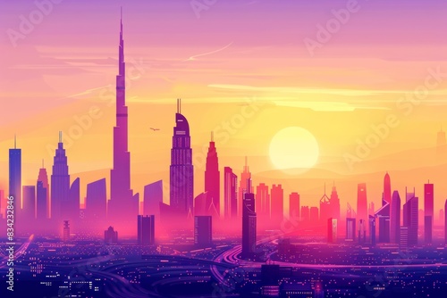 © imlane, Fototapeta premium From top to bottom, the picture has a violet sky, yellow, and white gradient background