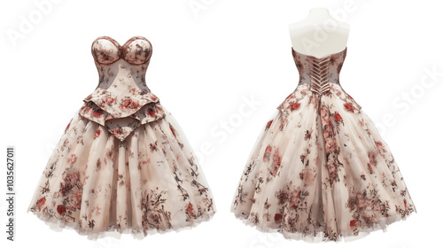 © MR. AK BOSS, Obraz premium Front and back view of a gungari dress, strapless mockup template display, png file, girl, different styles, different styles, beautiful gown designs, wedding gowns, diff, on a transparent backgrounds