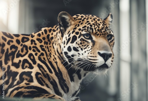 Naklejka premium front animal shadow isolated white view jaguar wild prowling spot jungle...