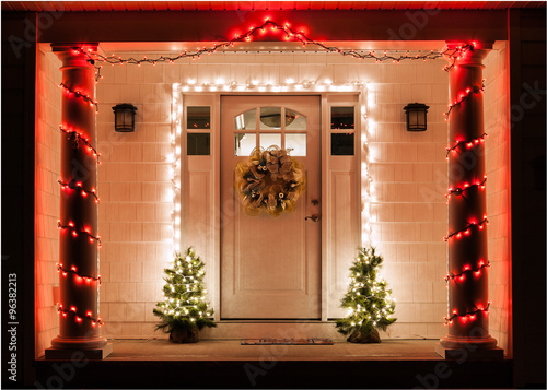 © pgfdonohoe, Fototapeta premium Front door of residence decorated for Christmas