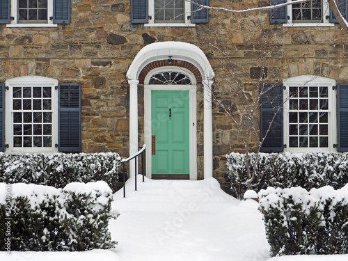 © Spiroview Inc., Fototapeta premium front door of stone house in winter