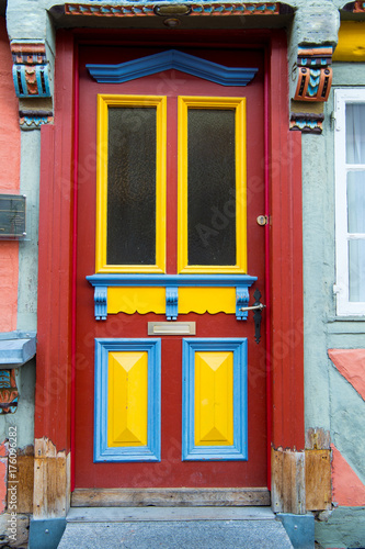 © be free, Fototapeta premium Front door with glass windows and painted wooden board