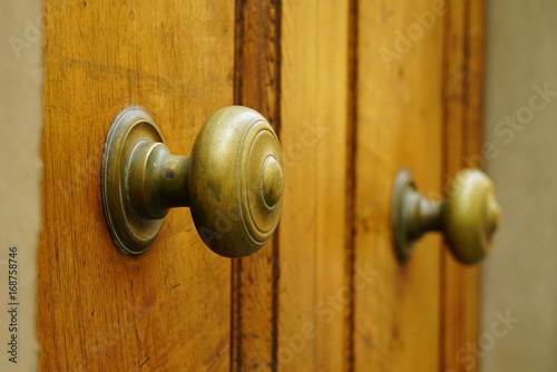 © buttbongo, Fototapeta premium Front double door brass door knobs