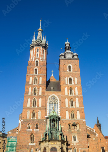 Fototapeta premium Front facade of the historic St. Mary Basilica in Krakow, Poland
