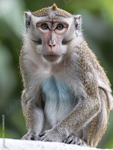 © Bejo Studio, Obraz premium Front-facing monkey with fur. Serious expression, with blurred green background