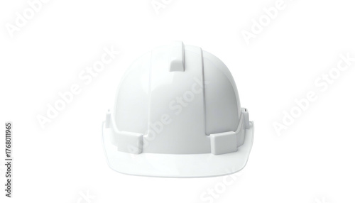 © Keenan, Fototapeta premium Front-facing shot of a white safety helmet isolated on a black background