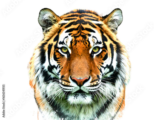 © MdIbrahimIslam, Fototapeta premium Front-Facing Tiger Portrait in Expressive Oil Brushwork, Transparent Background