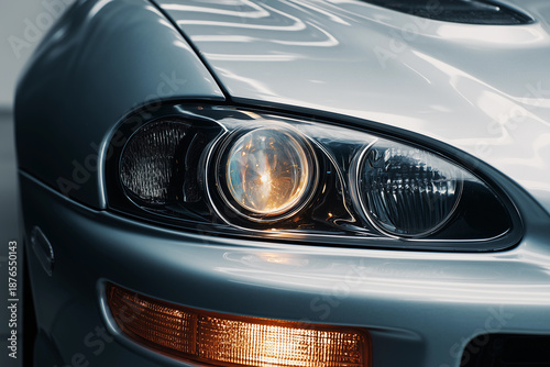 Fototapeta premium Front headlights tuning in a studio setting captures the detail of automotive...