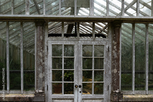 © Renata, Fototapeta premium Front of an old, rusty and vintage looking greenhouse in Pena Park, Sintra, Portugal