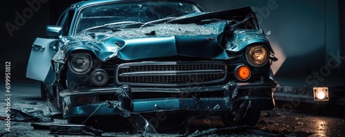 © Instacraft.Studio, Fototapeta premium Front of black car get damaged by accident on the road