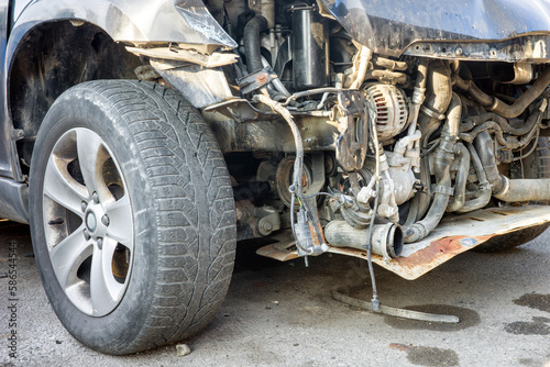 © Jaroslav Moravcik, Obraz premium Front of blue car get damaged by accident on the road
