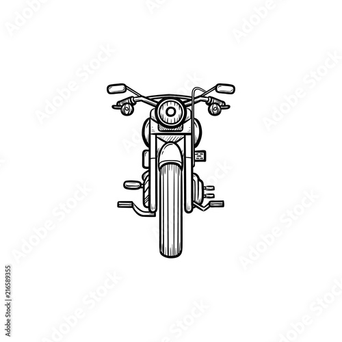 © Visual Generation, Fototapeta premium Front of motorbike hand drawn outline doodle icon. Speed ride, motorcycle sport, fast transport concept. Vector sketch illustration for print, web, mobile and infographics on white background.