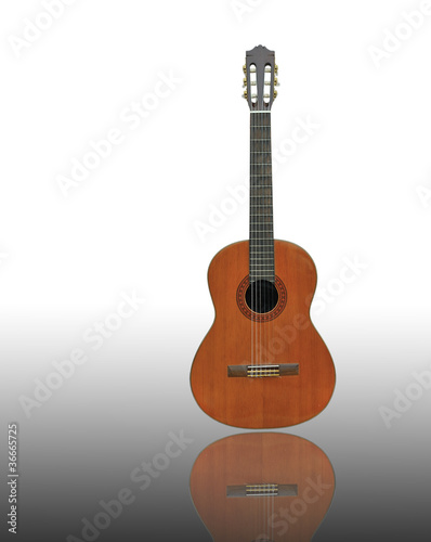 Naklejka premium Front Old classic guitar on reflect floor