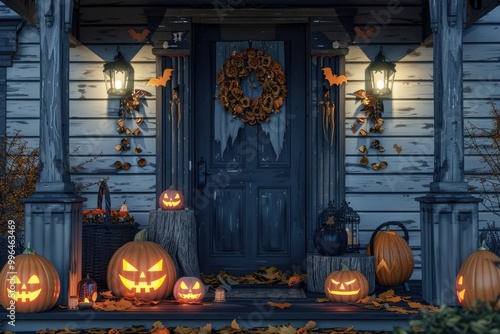 © Anjali, Obraz premium front porch with Halloween decorations Halloween decorations