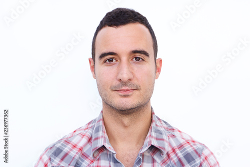 Fototapeta premium front portrait of handsome latin man against isolated white background