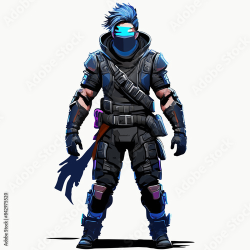 © Shapequl Islam, Naklejka premium "Front-Pose Cyberpunk Mascot Graphic for Graphic Designers: Futuristic Design"