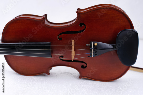 Fototapeta premium Front side of violin put on background,show detail of string instrument