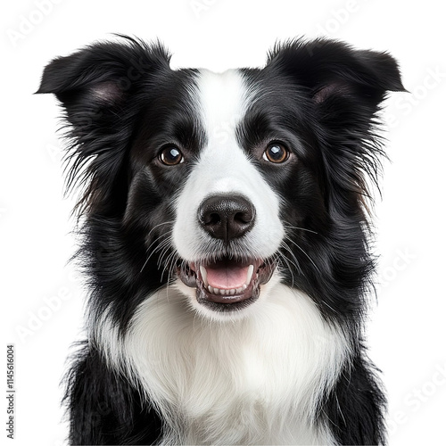 © CrazeePixelINC, Fototapeta premium Front view close up of an extremely perfect looking single border collie isolated on a white transparent background