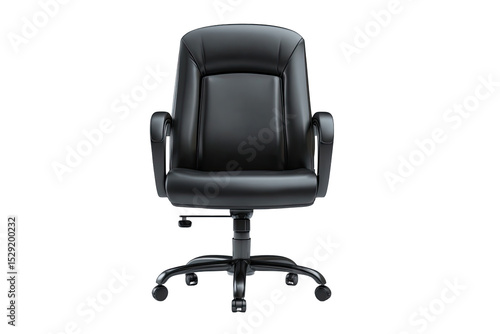 © Muhammad, Fototapeta premium Front view of a black leather office chair. Solid, comfortable, ergonomic design