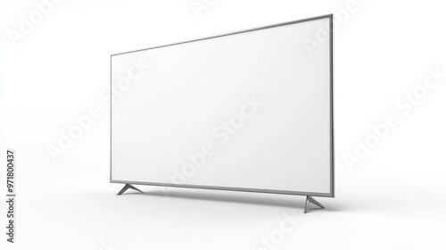 © MetaPixel, Naklejka premium Front view of a blank LCD LED or TFT TV panel with a metallic finish isolated on a white background Realistic 3D rendering of a modern sleek white screen