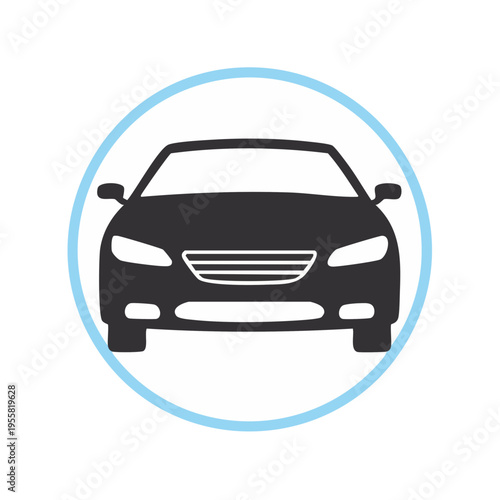 Fototapeta premium Front view of a dark car icon inside a blue circle