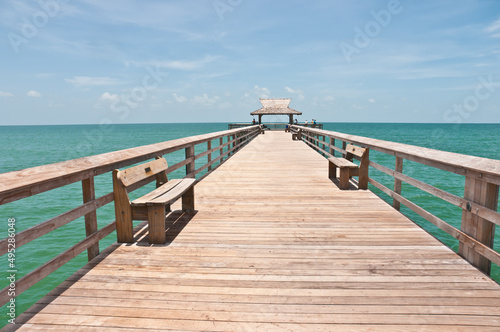 © reve15, Obraz premium front view of a deserted, wood pier, extending one hundred yards, into the gulf of Mexico, on a sunny afternoon