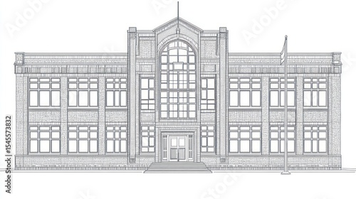 © ari, Fototapeta premium Front view of a large, historic school building