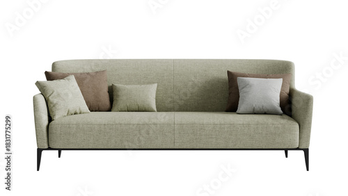 Fototapeta premium Front view of a modern sofa on an isolated background.