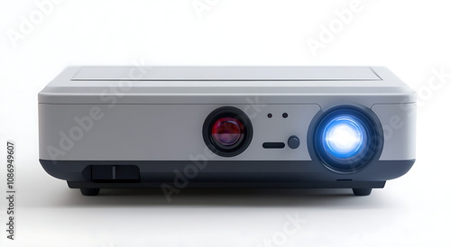 © imam, Fototapeta premium Front view of a white projector isolated