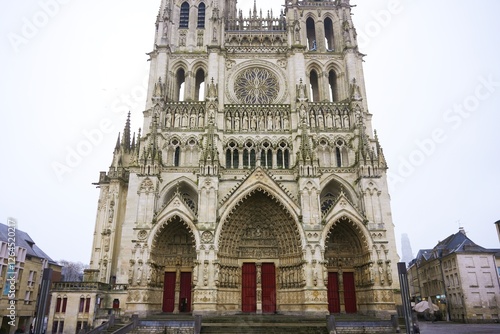 © Viola, Fototapeta premium Front view of Amiens Cathedral with ornate Gothic facade