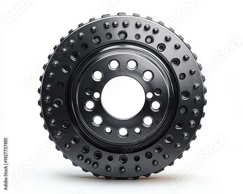 © Bartek, Obraz premium Front View of Automotive Brake Disc Isolated on White Background for Precision Engineering and Design Concepts