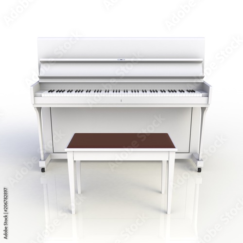 © krung99, Fototapeta premium Front view of classic musical instrument white piano isolated on white background, Keyboard instrument, 3d rendering