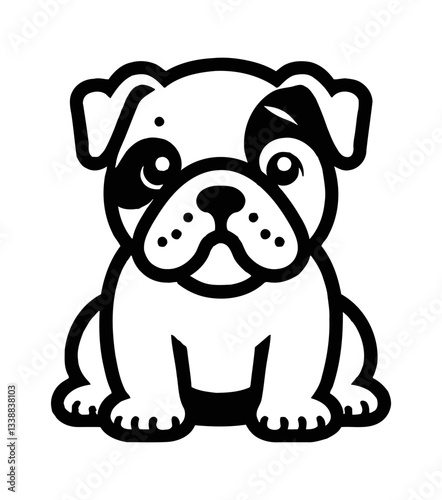 Fototapeta premium Front View of Cute Sitting Bulldog with Detailed Black and White Outline Graphic Art
