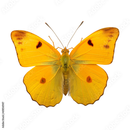 © SuperPixel Inc, Fototapeta premium Front view of Orange-barred sulphur butterfly isolated on white transparent background