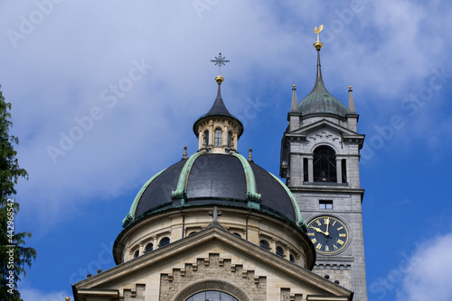 © Michael Derrer Fuchs, Fototapeta premium Front view of protestant church Zurich Enge at summer day morning. Photo taken July 2nd, 2021, Zurich, Switzerland.
