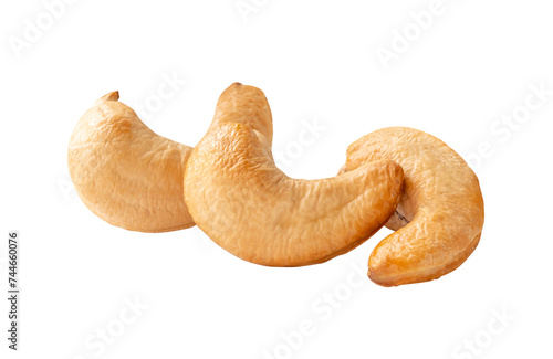 Fototapeta premium Front view of three roasted brown cashew nuts in stack isolated with clipping path in png file format