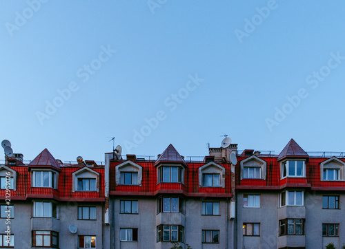 © phpetrunina14, Obraz premium front view of townhouse with blue sky above