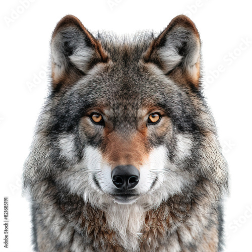 © marteen stenberg, Fototapeta premium front view of wolf head isolated on transparent background ,generative ai