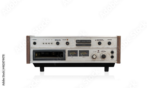 Fototapeta premium front view old wooden and silver stereo tuner on white background, object,...