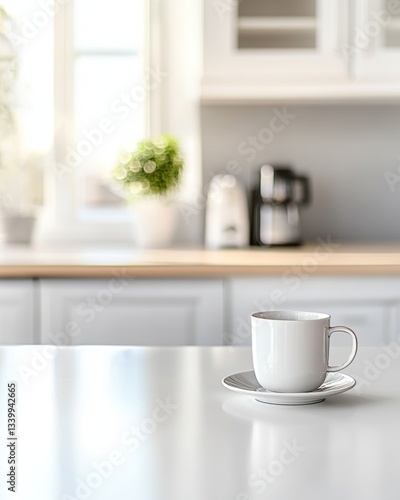 © snezhkina, Obraz premium Front View On An Empty White Glossy Kitchen Table