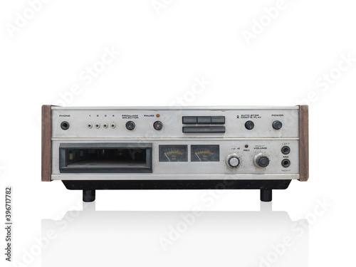 © nonneestudio, Fototapeta premium front view silver and wooden video and stereo on white background, object, technology, copy space