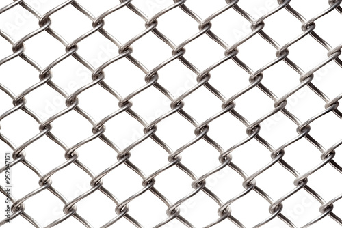 Naklejka premium Front View To a Chain link fence PNG Metal wire mesh isolated on white and transparent background - Steel Fence grid Galvanized wire Protective grid Security and Boundary Concept