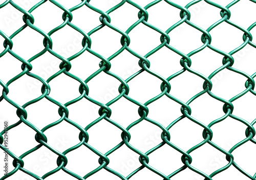 © Stock - Realm, Naklejka premium Front View To a Green Chain link fence PNG Metal wire mesh isolated on white and transparent background - Steel Fence grid Galvanized wire Protective grid Security and Boundary Concept