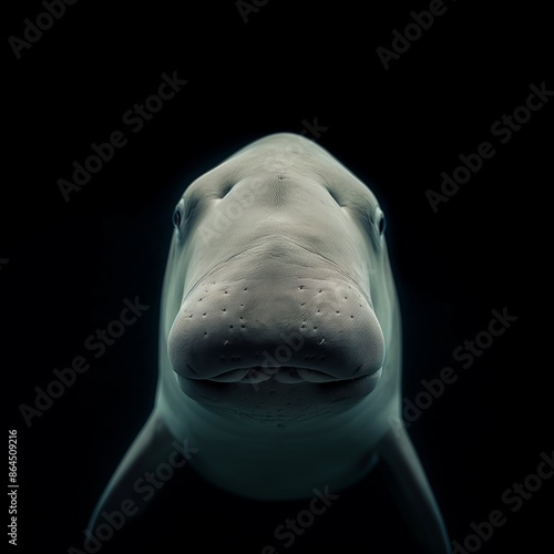 Fototapeta premium Frontal face portrait of an elegant dugong staring directly at the camera.