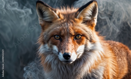 © i-element, Obraz premium frontal portrait of a fox in the smoke