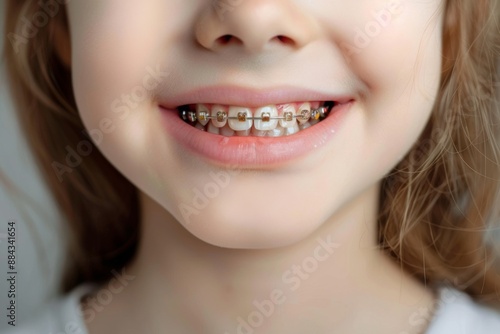 Obraz premium Frontal view of a little child mouth with braces