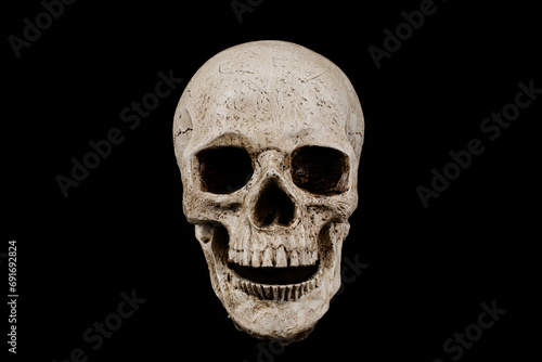© David, Fototapeta premium Frontal View of Skull Decoration with Copy Space on Black Background